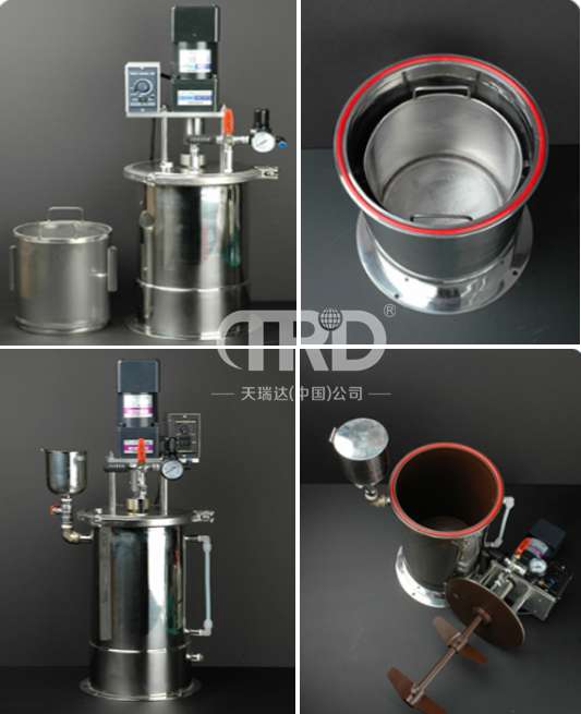 ◆ 每個(gè)液料壓力桶都配有精密恒壓調(diào)壓閥,維持從壓力桶至點(diǎn)膠閥的流體壓力。液料壓力筒的開關(guān)是簡(jiǎn)單的夾緊方式,結(jié)構(gòu)上內(nèi)部面和下部面相同,可以使用內(nèi)部容器。